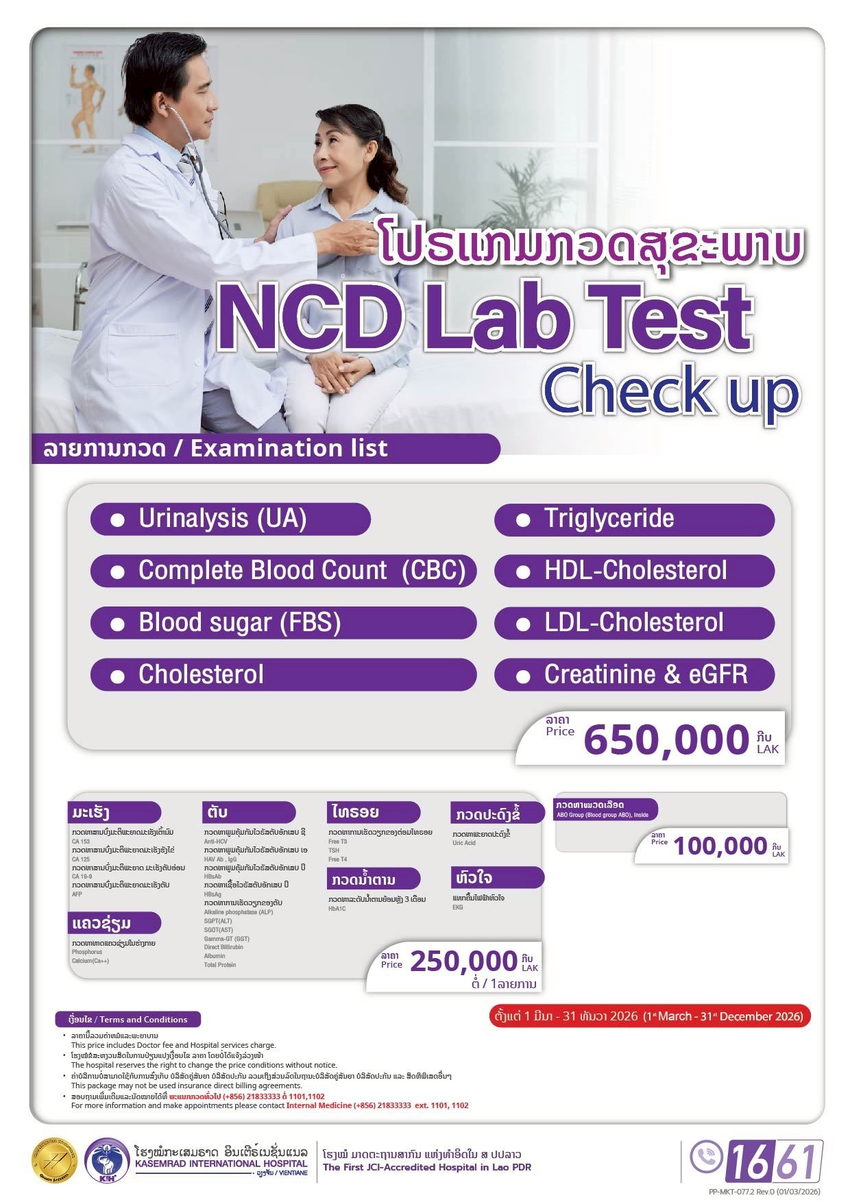 For more information please inbox us at “Kasemrad International Hospital Vientiane “ on Facebook https://shorturl.at/iwW06 or email: 该邮件地址已受到反垃圾邮件插件保护。要显示它需要在浏览器中启用 JavaScript。